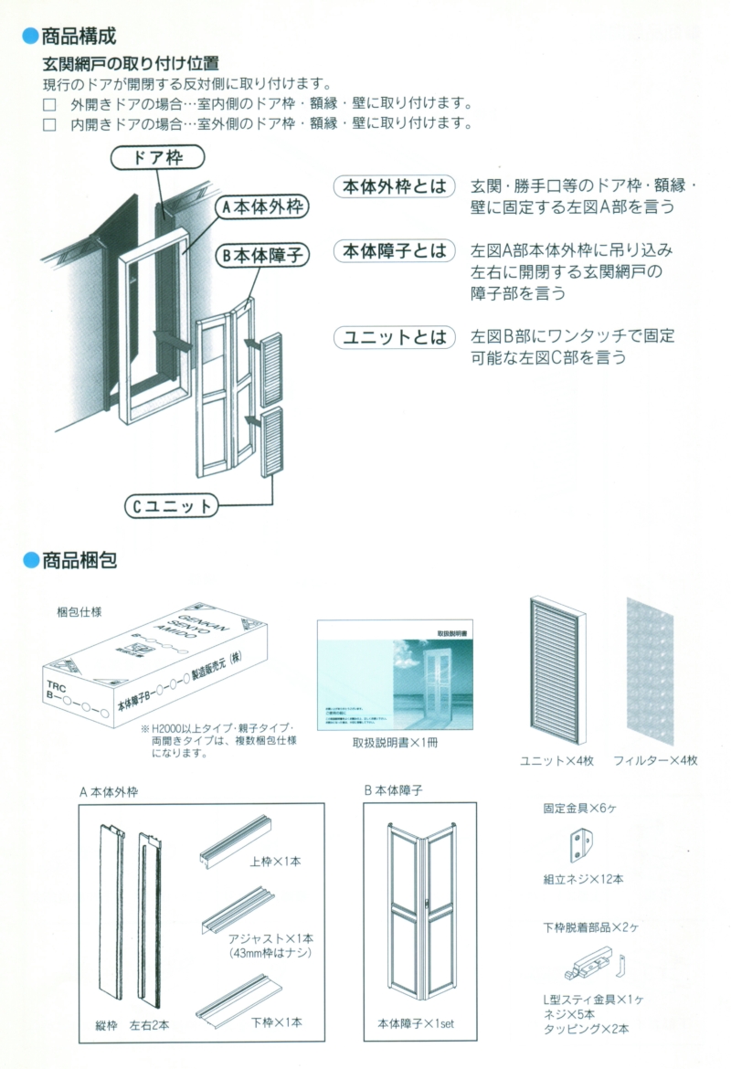 玄関ルーバー網戸ドア(取扱説明書)