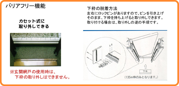別の詳細を見る ↓ 【【【基本機能】】】 1.ルーバーユニット機能 ■脱着可能式ルーバー ■通風調節式ルーバー 2.防犯機能 ■内外カギ付き ■上下2点のロック 3.防虫ネット機能 ■取り外し可能式アミド ■張り替え簡単 4.大型ポスト機能 ■取り入れ口が左右2ヶ所付き 新聞や郵便物も取り入れ可能 5.V型開閉機能 ■狭い玄関でもラクラク開閉 ■上部吊りコマ式で耐久性アップ 6.高さ調整機能 ■本体枠が5cm調整できるので あらゆるドアに適用できる ※1〜6は、 7.1/4収納機能 【【【オプション機能】】】 |